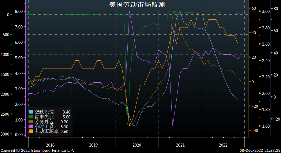 今天的首申数据符合预期,当周有23万人第一次申请失业救济。这个数据依然是一个极低的水平,但是,跟去年同比的数据已经开始收窄,劳动力市场正在开始出现松弛的迹象。