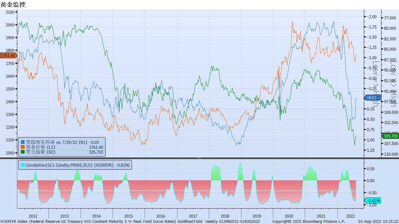 理解当前黄金高位,当然离不开俄乌战争冲击和1980年代以来全球通胀的最高水平。看今年以来的黄金监控图。