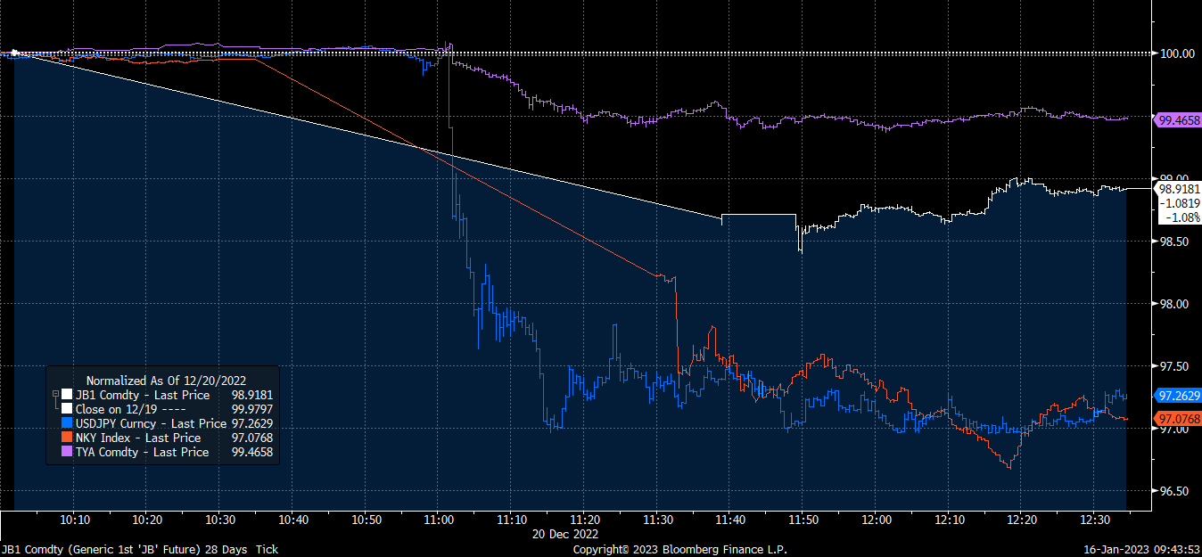 12月20日的市场反应是:日债 日股 美债 大跌,USDJPY 大跌。就风险管理而言,我们更重视价格波动的幅度。按照非常粗略的估算,美债下跌0.5%,日债下跌1.08%,日股下跌3%,日元上涨2.7%。我们用这个比例来构建周三的防御策略。按照一个非常粗略的比例,波动率可以定义为 1:2:6:6 也就是波动率市值调整参数。