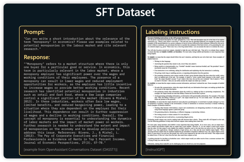 你写了一篇关于垄断一词的相关性的简短介绍,或者类似的东西,然后承包商也写下了一个理想的回应。当他们写下这些回复时,他们遵循大量的标签文档,并且要求他们生成提供帮助、真实且无害的回答。
