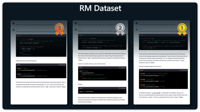 在奖励建模步骤中,我们现在要做的是将数据收集转变为比较形式。