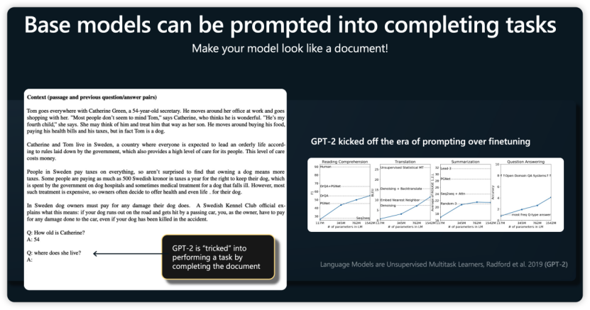 在 GPT-2 前后,人们注意到比微调更好的是,你可以非常有效地提示(prompt)这些模型。