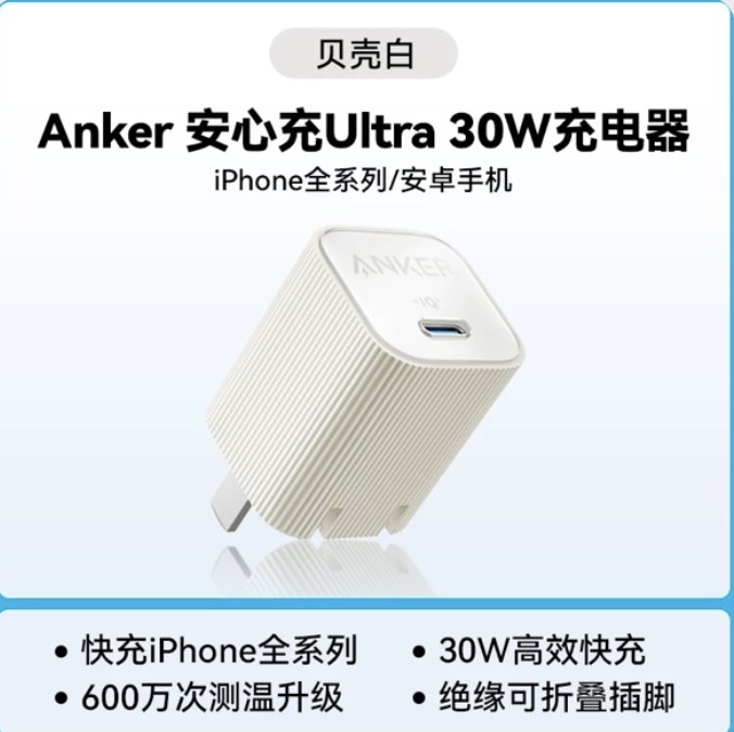 Anker安克安心充Ultra充电头30W氮化镓充电器