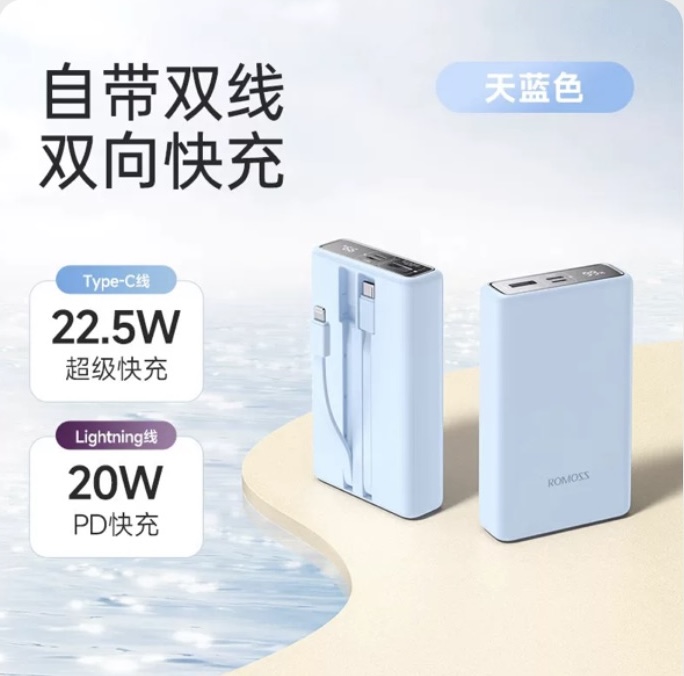 罗马仕自带线充电宝