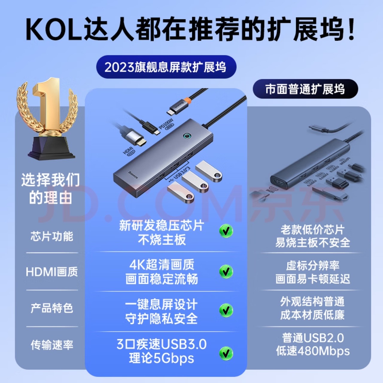 扩展坞 HUB分线集线转换器4K高清投屏USB3.0/PD100W充电通用雷电3/4