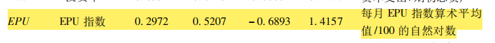 - EPU2每月经济政策不确定指数算术平均值取自然对数