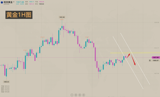 欧盘黄金1913下持空看跌不变,1910附近可以继续继续看空。震荡了一天是时候选择方向了。直接空即可。
