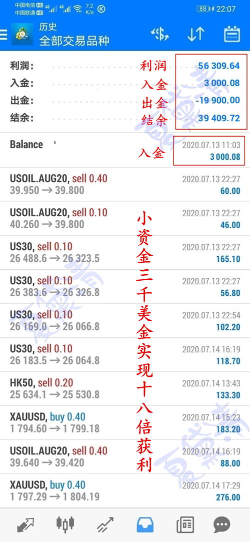 如何将交易的风险将为最低,那就是将自己的本金全部出掉,用盈利的部分不管交易,达到复利!黛清的这个小资金学员,目前已盈利十倍有余,本金也全部出掉。市场的鱼龙混杂让你心生畏惧,只有当你本金全部出局,用盈利的部分继续交易时,你的资金才是最安全的!