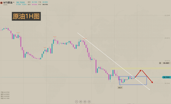原油维持昨天思路不变,短线压力在39.2位置,强压在39.7附近,仓位允许的可以分批布局空单,稳健的关注39.2附近的压制,不破做空,破位则等39.7附近做空。