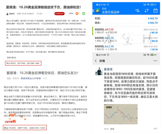 周一黄金开盘走空,黛清通知实盘学员现价1900进场空单,止盈位给到1893,空单如期止盈出局。欧盘黄金反弹走高,黛清通知学员1898进场多单,在1904位置手动止盈出局。再次回撤到1899位置,又给到我们进场多单的机会,1899位置通知学员进场多单。1904位置手动止盈出局。