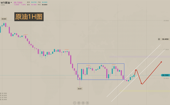 黛清认为若油价能够守住34.36附近支撑,则油价仍存在低位震荡调整的机会;另外,隔夜低点34.92附近也还存在一些支撑。上方重点关注200日均线37.27附近阻力,若意外收复该位置,则削弱短线看空信号。综合来看,短线操作思路上夏黛清建议以回调低多为主,反弹做空为辅。