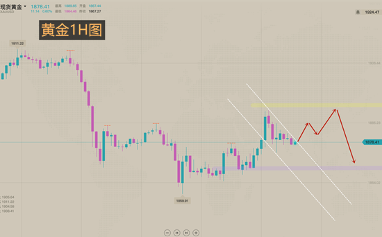 上方阻力关注1888-1890一线,下方支撑关注1875-1872一线;