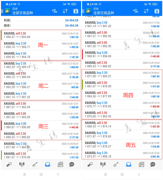 本周交易共20单,获利17单,亏损3单,共获利98.30个点,赚取24,454.29美金,约合人民币164,034.49元。祝大家周末愉快!