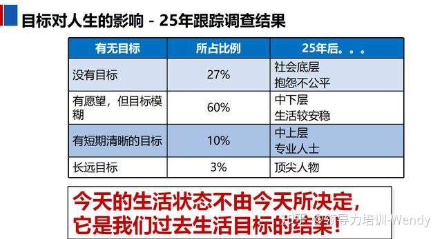 时间管理的原点是目标,就是你想实现什么,可以说目标几乎是所有事情的原点。可是在工作辅导中,问老板、问管理者你的目标是什么?在生活中,问朋友你的目标是什么?得到的答案多数是模糊不清晰的。某科学研究得出,目标的清晰度和他的成就是成正比的,世界上的顶尖人物往往有长远而明确的目标。