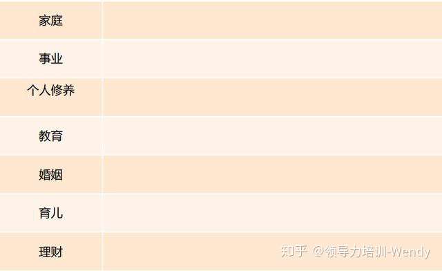 从七个维度描绘人生地图:家庭、事业、个人修养、教育、婚姻、育儿、财富。即每个维度下,一一罗列要达成的目标,这七个维度是我经常用的,当然还可以从其它维度思考,这个需要自己界定,哪个适合用哪个。这一过程是对你人生愿景的清晰而具体的描述,仍需要耐心和不断更新。每年或每半年给自己设定目标的时候,可以认真梳理一遍,做完内心宁静,降低焦虑提升幸福感。