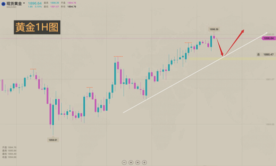 欧盘依托1885直接进场多,上方继续冲击1900甚至是1906位置,下方1880止损即可。