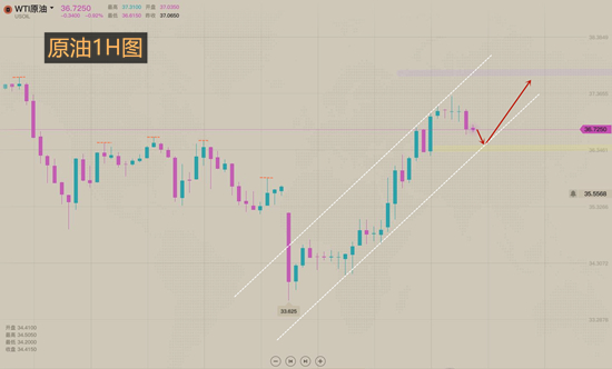 原油方面,下方顶底转换支撑在35.8附近,上方下跌口强压在37.8位置。日内暂且按照这个区间高抛低吸。下方靠近35.8附近做多,上方靠近37.8附近做空。