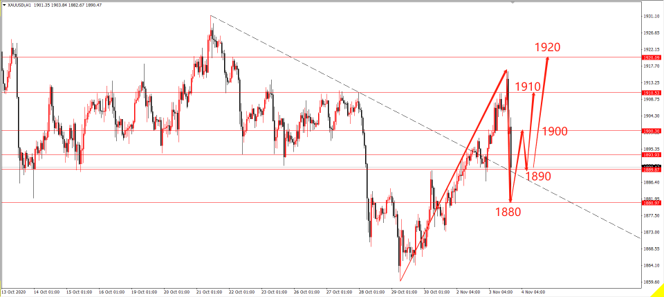 撰文之前,金价两度下探到1890关口之下后短线回升至1900关口附近,伴随美国大选的莅临,市场所展现的情绪也有这方面的原因。今日07:00-14:00,美国大选各州投票站将陆续关闭,几个摇摆州的投票结果也将相继出炉,美国大选是近期市场的主要风险点,今早黄金的暴挫也有着方面原因,做好仓位把控是关键!