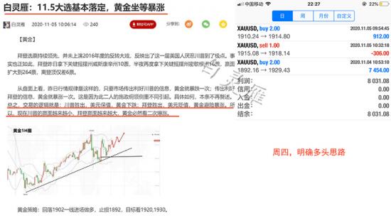 回顾周四,由于大选基本确定,在文中也解释过行情会暴涨,所以只要做多就对了。轻轻松松斩下几十个点,满载而归!