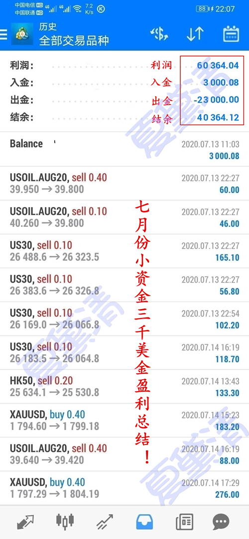如何将交易的风险将为最低,那就是将自己的本金全部出掉,用盈利的部分交易,达到复利!黛清的这个小资金学员,目前已盈利十倍有余,本金也全部出掉。市场的鱼龙混杂让你心生畏惧,只有当你本金全部出局,用盈利的部分继续交易时,你的资金才是最安全的!