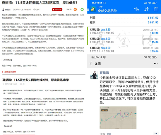 周四黄金一路上涨,黛清的思路也是多,回调还是多,欧盘黄金走高,1907位置黛清通知学员进场多单,止盈位给到1914。1908再次通知学员进场多单。止盈位给到1915。多单均已到达止盈位盈利出局。欧美盘黄金暴涨,黛清通知学员1920现价进场多单,1927位置手动止盈7个点出局。盈利最好的方法就是设置止盈止损,在盈利的时候能够在预定点位及时止盈离场,保住利润,见好就收。