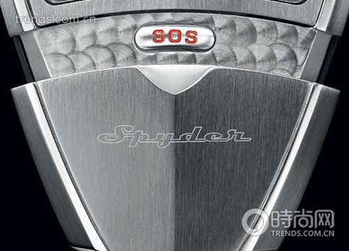 这个在关键时刻显身手的SOS 呼救信号模式按键,就藏在兰博基尼 Spyder系列手机的尖下巴里,你可以预设 20 个电话号码及短信对象,遇到紧急状况时,轻推滑盖,按下 SOS,无论身处何时何地都能将危险信号发出。