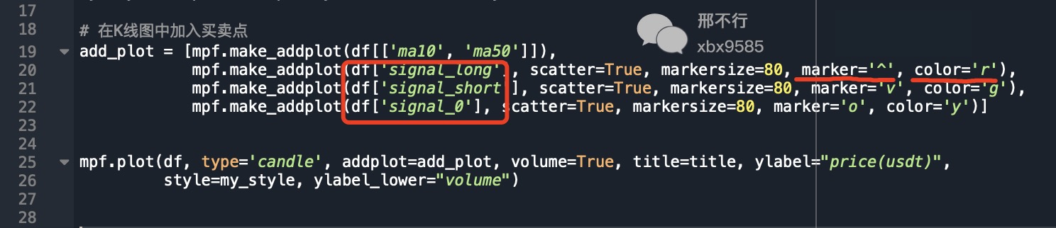 我给大家提供的数据已经包含了交易信号,只需按照代码将交易信号添加到画图函数即可。