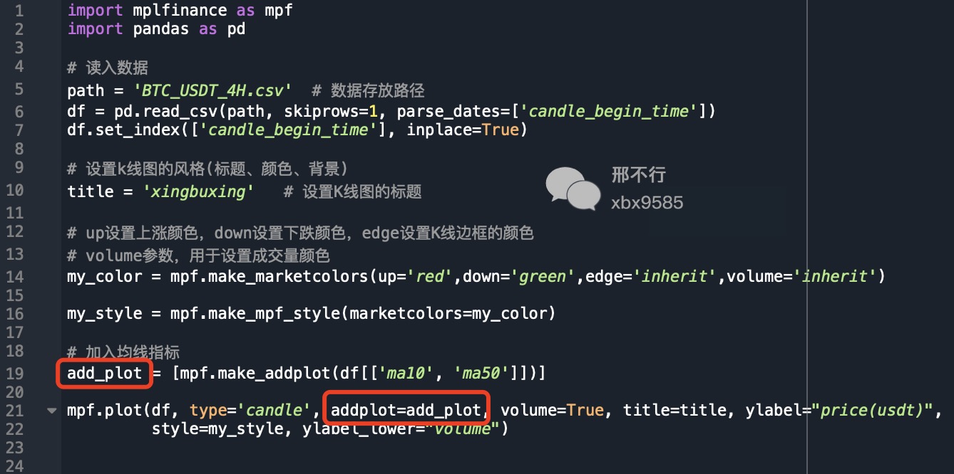 我给大家提供的数据里已经算好了均线,只需按照代码将均线指标添加到画图函数即可。