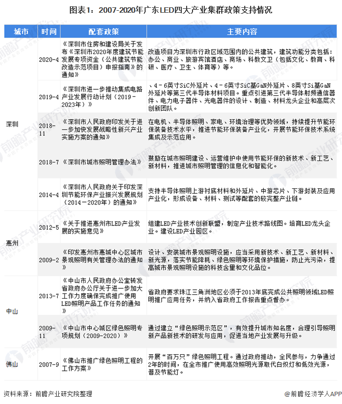 2020年4月,深圳市住房和建设局发布关于《深圳市2020年度建筑节能发展专项资金(公共建筑节能改造示范项目)申报指南》的通知》大力支持公共建筑节能发展,对于推动LED照明产业发展,竞争力提升具有重要作用。在政策支持上,深圳市对于推动LED照明产业发展长期处于行业领先地位。