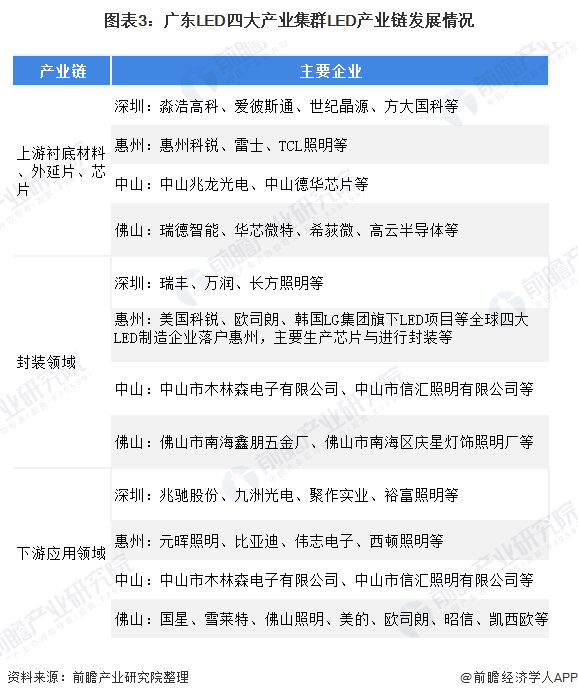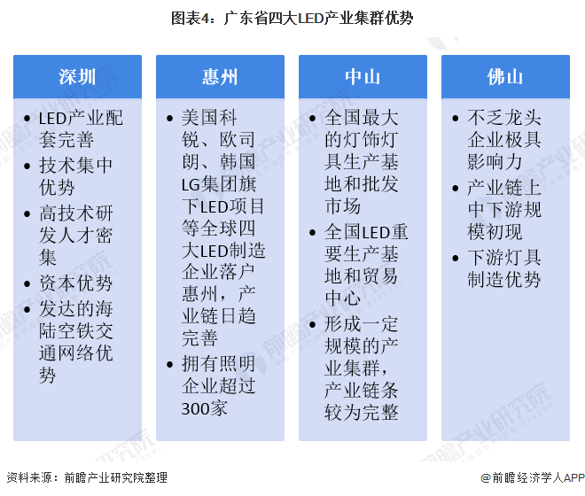 惠州作为广东临近深圳的城市之一,已成为全国重要的半导体照明产业基地,既有产业龙头,又有产业公共服务平台。中山市经过多年的发展,已成为全国最大的灯饰灯具生产基地和批发市场,也是全国LED重要生产基地和贸易中心。