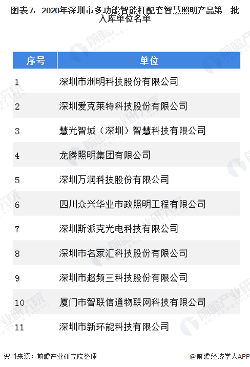 2020年8月,深圳市智慧杆产业促进会发布了“入围深圳市多功能智能杆配套产品第一批入库单位”名单。爱克莱特、洲明科技、名家汇、超频三、万润科技等多家深圳LED企业获得入围。
