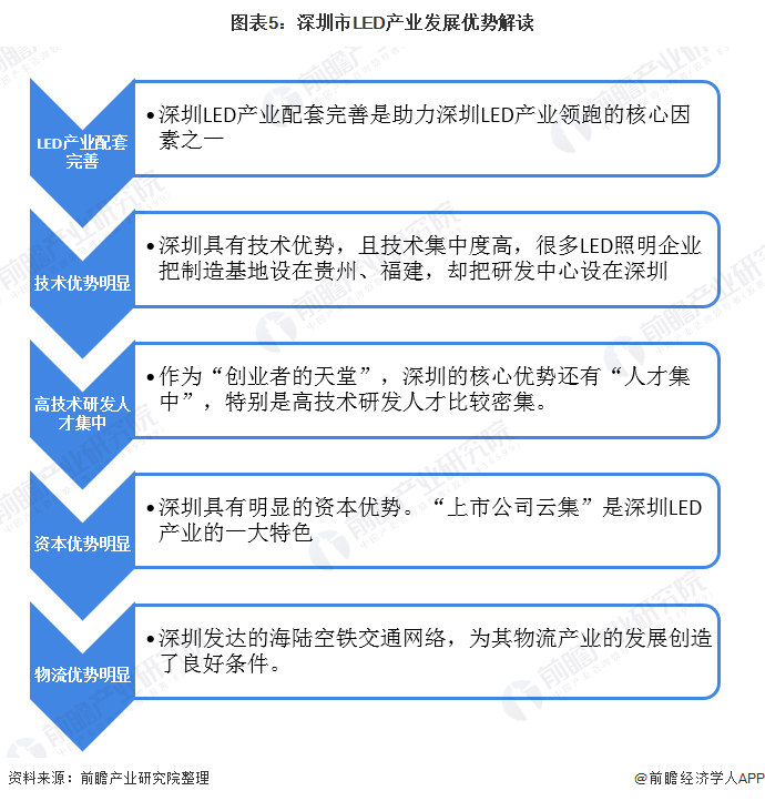 深圳作为全国规模最大的LED产业集群之一,产业配套完善,高新技术人才集中,具有明显的技术研发人才优势,资本优势,已经发达的物流优势。