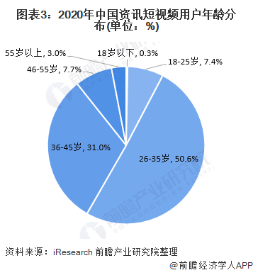 从用户年龄分布来看,根据iResearch公布的调研数据显示,我国资讯短视频用户中,26岁及以上的用户占比达92.3%,远高于短视频用户中25岁及以上用户占比(74.9%),相对成熟的用户更加关注社会资讯。