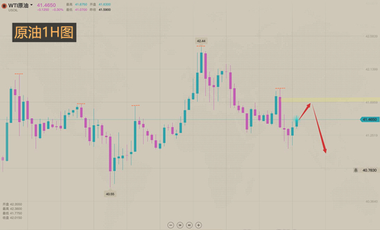 原油日线报收上下影线小阳线,上方阻力重重,下方支撑保持,日内的短线多空争夺将继续,4小时图表,布林上下轨收窄,MACD零轴上方死叉运行,反弹动能减弱,日内上方首要阻力42.10-20,第二阻力42.70,下方支撑41.00,40.50,日内倾向于第一阻力42.10遇阻后回测41.00,41.00此位置为4小时关键性支撑位置,跌破后方能延续空头。