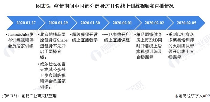 此外,传统健身机构也纷纷开设线上训练视频和直播满足用户需求以及缓解疫情带来的冲击。精品团操健身房Justin&Julie于2020年1月7日就在品牌公众号上发布训练视频供会员居家训练;1月29日,北京的精品团操健身房Shape塑健身率先开启了团操直播,传统连锁健身俱乐部威尔仕也在当天在其公众号上发布训练视频供会员居家训练;而后还有超级猩猩、一兆韦德、乐刻等健身房加入开设线上直播课程行列。
