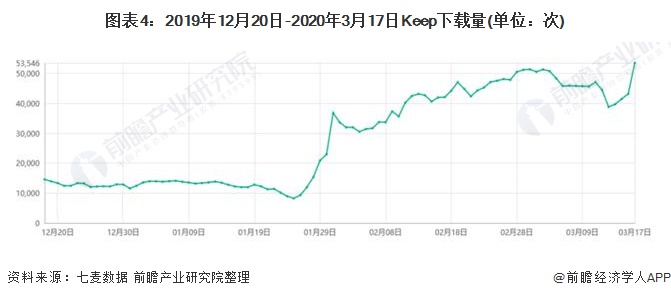 2019年年底,疫情的爆发让宅家健身成为热潮,以Keep为代表的健身APP火爆,Keep仅在Appstore上的近三个月下载总量就高达289万,最高峰单日下载量达到5.35万次。