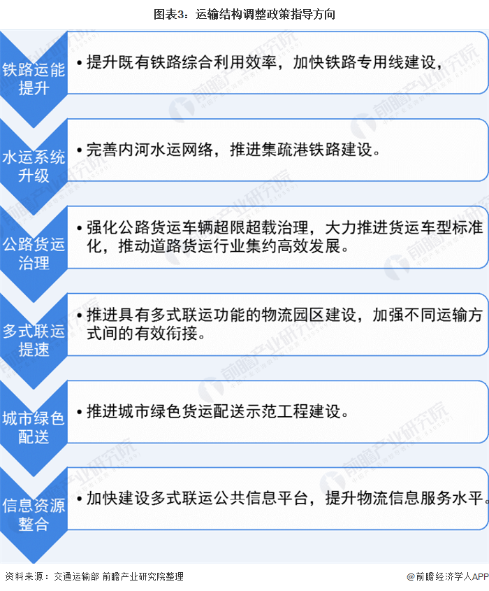 2018年10月国务院办公厅印发《推进运输结构调整三年行动计划(2018-2020年)》,对铁路、水运、公路、多式联运、城市配送、信息资源六个方面提出具体的发展要求,推进落实货运结构调整的发展方向。