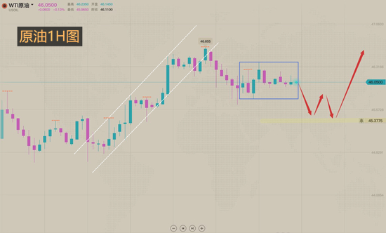今日原油依然还是会继续新高。上周欧佩克会议同意小幅增产,但是原油不跌反涨,说明多头动能依然强势,只不过从此前的单边大涨,转为震荡上行的模式,但是趋势上涨不变,今日还是继续低多。原油偶盘回落45.5-45.3区域内做多,防守44.8,上方先看新高46.5,进一步是48位置。