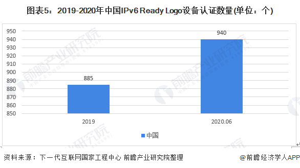 IPv6ReadyLogo认证方面,截止到2020年6月1日中国获得IPv6ReadyLogo国家中数量为940个,位居全球第一