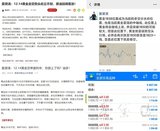 周一黄金先后多,亚盘黛清通知学员1836进场空单,止盈位给到1831,空单如期到达止盈。1834再次通知学员进场空单,在1829位置手动止盈出局。欧盘通知学员1833进场空单,在1827位置手动止盈出局。行情继续下跌,黛清通知学员1830进场空单,在1824位置手动止盈出局。美盘行情迎来一波涨势,我们并没有去追多。选择观望。