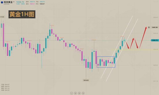 欧盘回落直接就是多,依托1834的支撑进场做多,上方目标1850。