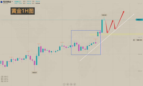 黄金从上周突破1870后行情转多,今日亚盘直线拉升再次测试1900整数关口,但是最终遇阻回落,当前行情在周四盘整区域内获得支撑,欧盘站稳此区域的情况下黄金还是继续低多看涨不变。上涨过程中,行情可能因为短线的消息刺激大幅调整,但是整体的趋势没有改变。