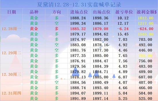 周四黄金先跌后涨,亚盘黛清通知学员1888进场空单,在1893位置手动止盈出局,欧盘1891通知学员进场多单,在1897位置手动止盈出局。美盘1894通知学员进场多单,在1899位置手动止盈出局。