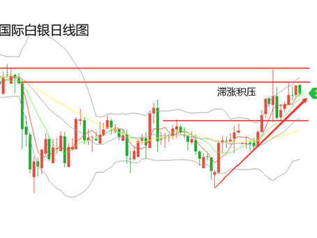 国际白银:相对黄金来说,白银最近一个月的上涨趋势表现的更加明显,不过同金价一样,最近两周白银滞涨积压,银价在去年9月下旬跳水位置一线,形成了主要压力区域。