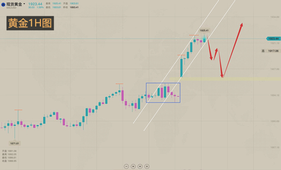欧盘黄金在1920附近即可再次做多,短线黄金难免存在震荡或者是调整,但是震荡后黄金还将继续新高,今日1930目标位置是必到值。欧盘继续持多看涨即可。