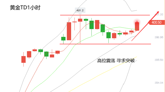 总体而言,黄金TD短期上升势头依旧强劲,目前金价上涨遇阻维持高位震荡整理,可以关注主要支撑位置继续看涨黄金价格。