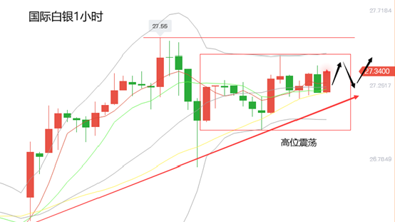 总体而言,国际白银上升势头强劲,目前暂时遇阻维持高位震荡整理,等待向上突破机会,可以关注主要支撑位置寻求短线做多机会,继续看涨白银。