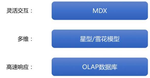 OLAP核心三原则的“多维”通过星型/雪花模型得以保证(已经有OLTP能参考的经验)、“灵活交互”和“高速响应”通过基于“预计算”数据的交互查询而实现。这就顺理成章的让我们联想起多维表达式——MDX(MultiDimensional eXpressions),此技术在E.F.Codd提出OLAP四年后就被微软定义并使用。