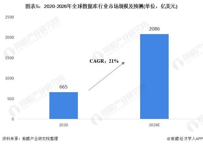 海量数据的爆发必将驱动整个全球数据库行业市场的稳步增长,2026年全球数据库行业市场规模有望突破2000亿美元。