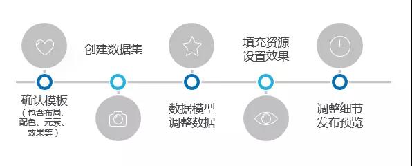 论一个仪表盘的正确创建模式,首先我们必须先明确这个仪表盘针对的对象是谁,能实现什么目标,对象基于这个目标具体到展现什么指标;然后确定布局、色调、可视化方式、交互方式等。做好以上准备工作,才能做到有的放矢,再根据下图流程在Smartbi里面做出美观有效的仪表盘。